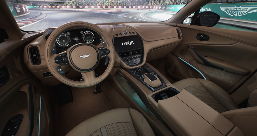 Lo primero que llama la atención del Aston Martin DBX 707 es el kit de carrocería instalado, dejando muy claro que estamos ante una configuración que habla de altas prestaciones en primera persona. En el frontal se introducen una nueva parrilla de mayor tamaño y nuevas tomas de aire que incluso nos recuerdan al mítico One-77, acompañándose por un lateral claramente ensanchado que estrena nuevas salidas de aire tras las ruedas delanteras y llantas de hasta 23″, y culminando en una zaga que gana en carácter gracias al nuevo difusor en fibra de carbono inspirado en la Fórmula 1, las 4 salidas de escape individuales y un prominente spoiler sobre el portón del maletero.